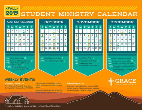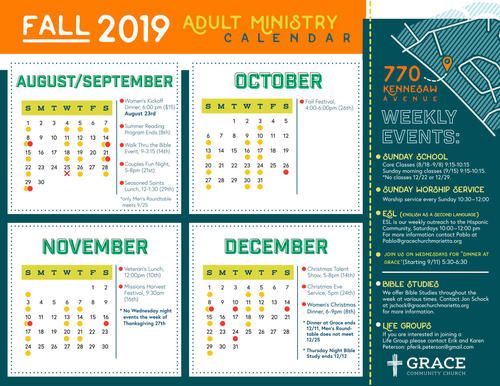 Here are the Fall 2019 Calendars in case you didn't get a copy. Hard copies are available in the foyer. These calendars contain the latest revisions: