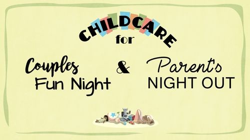 Whether you are attending the Couples Fun Night or want a Parent's Night Out with your spouse or friends, we are providing childcare for children ages Birth-6th grade. They will have dinner, watch a movie and have fun playing. The cost is $5 per child and includes dinner.