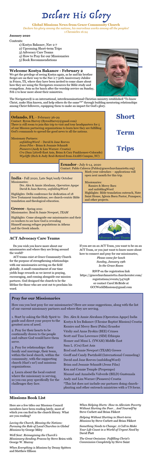 Ecuador -- July 6-14, 2020 Contact Pablo Cabrera at pablo@gracechurchmarietta.org